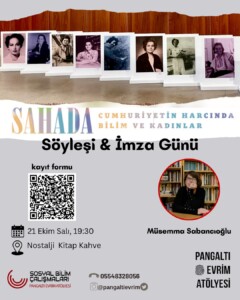 21 Ekim Salı günü 19.30’da Nostalji Kitap Kahve’de kitabı yayına hazırlayan ve sarkac.org editörü Müsemma Sabancıoğlu tarafından gerçekleştirilecek söyleşi sonrası imza günü yapılacak.